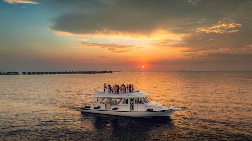 Combining music, movement, and Maldivian seascapes, this overwater DJ excursion sets a new tone for island adventures. As the ‘Sun Cruise’ sets sail across the open waters, a live DJ plays soulful beats to pair perfectly with the sunset. The music echoes over the horizon as the sky paints itself in soft amber light. With champagne or beer adding to the indulgence, guests can enjoy a journey that is both laidback and alive as the vessel glides over the open waters.