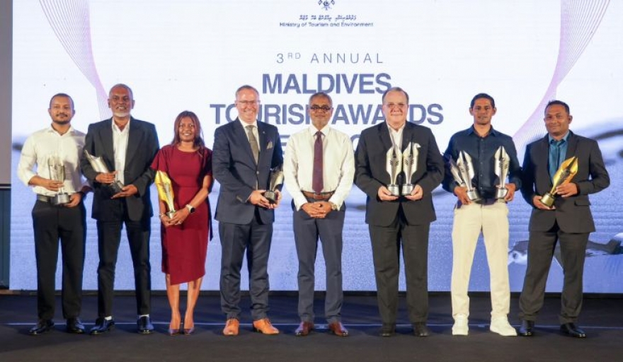 The Third Annual Maldives Tourism Awards was held on Saturday at Barceló Nasandhura Male’. The Maldives Tourism Awards was established to recognize and celebrate excellence in human resource development, community engagement, innovation, and sustainability within the Maldives tourism sector. This year, 8 establishments received a total of 10 awards for their excellence in staff wellbeing, human resource development, community engagement, and environmental stewardship.