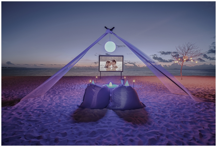 2. Silver Screen Under the Stars: Guests can join the resort’s weekly cinema night, where a big screen is set up for everyone to enjoy classics and new releases in comfort. For a particularly romantic touch, the resort team can set up a secluded beach cinema, with popcorn, drinks, and the resort’s cosy beach-bag chairs.