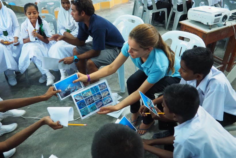 The marine team then visited the 11 islands in the atoll, conducting sessions that targeted three specific audiences. First, a visit to the school to conduct a condensed version of the yearlong education program for schoolchildren grades 6 to 10. Next, a meeting with the island council members to discuss development projects. Finally, an open community forum to convey the research being done at the resort, as well as give people a platform to ask questions and brainstorm ideas. Some initiatives that have come from this program include reducing use of single-use plastics and inspiring students to enter the fields of conservation and marine biology.