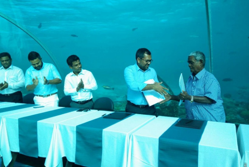 The agreement was signed between Minister of Tourism Moosa Zameer and Chairman of Kuredu Holdings Private Limited Mohamed Moosa.