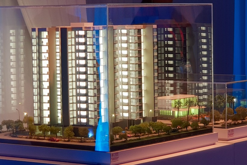 Each floor has eight apartment units; four 03-bedroom apartments and for 02-bedroom apartments. The facilities include a fully equipped gym, infinity swimming pool, kids pool and play area and a multifunctional hall and clubhouse.