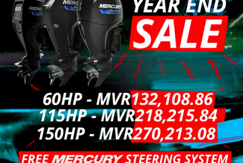 Hassan Marine Engineering has launched a special Year End Promotion where customers can get free Mercury Steering System worth MVR 26,735.32 for each purchase of Mercury SeaPro 60hp, 115hp & 150hp Outboard Engine.