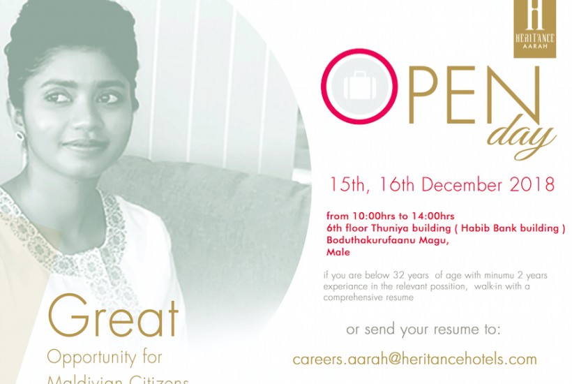 Luxury hotel chain, Heritance Hotels has announced that they will be hosting staff recruitment day on the capital city and 6 more islands in Raa Atoll of the Maldives for its upcoming resort, Heritance Aarah.
