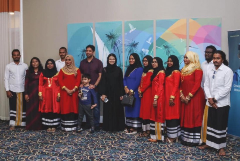 Maldives Marketing and Public Relations Corporations and Maldives Airports Company Limited organized the celebration as a welcome tea at the VIP Lounge of Velana International Airport. The visitors were escorted to the VIP lounge by the staff of MMPRC where they were welcomed by the Minister of Tourism Hon. Ali Waheed, Managing Director of MMPRC Mr. Thoyyib Mohamed and other senior officials of MMPRC, Ministry of Tourism, MACL, Maldives Immigration and MATATO. A special gift symbolizing the good will of Maldivians was presented to the visitor by the Minister. An executive gift package from MMPRC was presented to the visitor by the Managing Director of MMPRC Mr. Thoyyib Mohamed. Gifts on behalf of MACL was presented to the visitor by the Acting Managing Director of MACL Mr. Moosa Solih. The visitor was also awarded a 7-day free holiday voucher by AaaVeee Natures Paradise resort and return air tickets to Maldives by Oman Air.