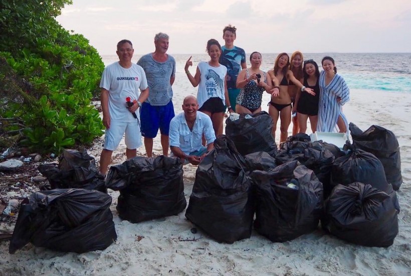 > As part of the Marine Ecology and Biology component of the Shark and Coral, they had an information session for the guests on board why single use plastic are so harmful for the ocean. A beach cleanup was conducted on the uninhabited island called Arigattha island located in one of the remotest atolls of the Maldives. Despite being so remote the guests collected almost 100 kilo of trash in just 40 minutes of cleaning the tiny uninhabited island. This goes to show how far reaching and significant the ocean plastic issue is.
