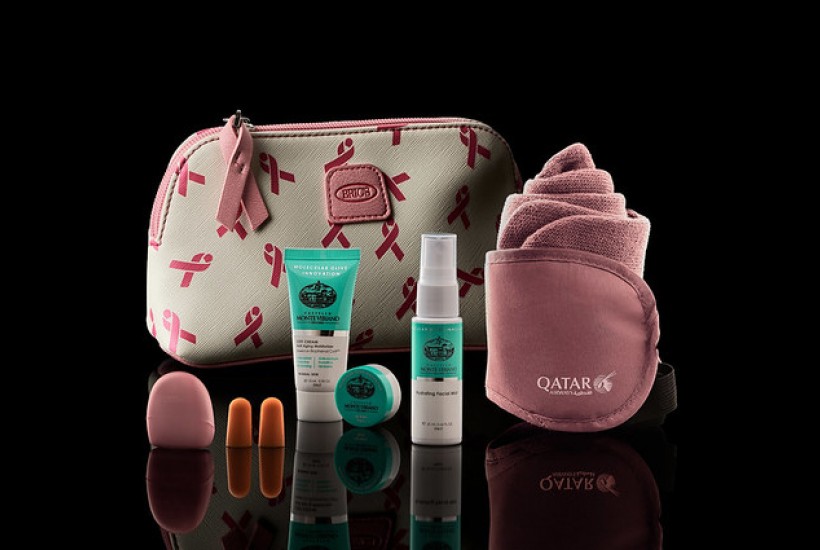 flights are also offered limited edition breast cancer awareness amenity kits.