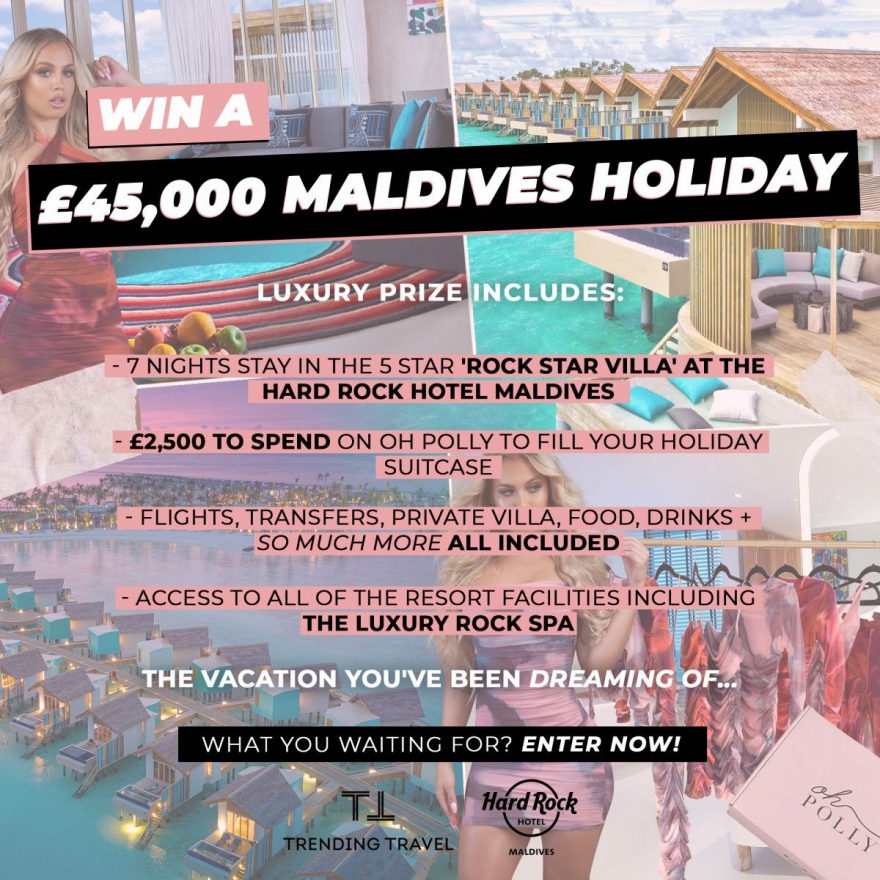 For more details on the giveaway, follow @ohpolly, @trendingtravel.co.uk and @hardrockhotelmaldives on Instagram.
