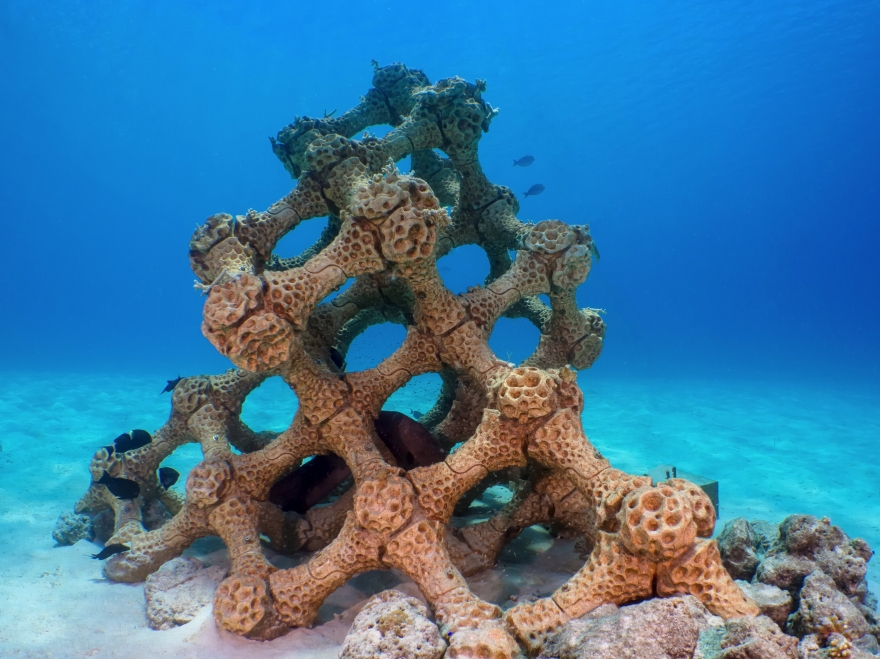 The reef, which recently won a Guinness World Record for the largest 3-D printed reef structure, was installed in August 2018. Coral fragments were transplanted onto the reef which was assembled underwater, but most of those fragments failed to attach to the new structure.
