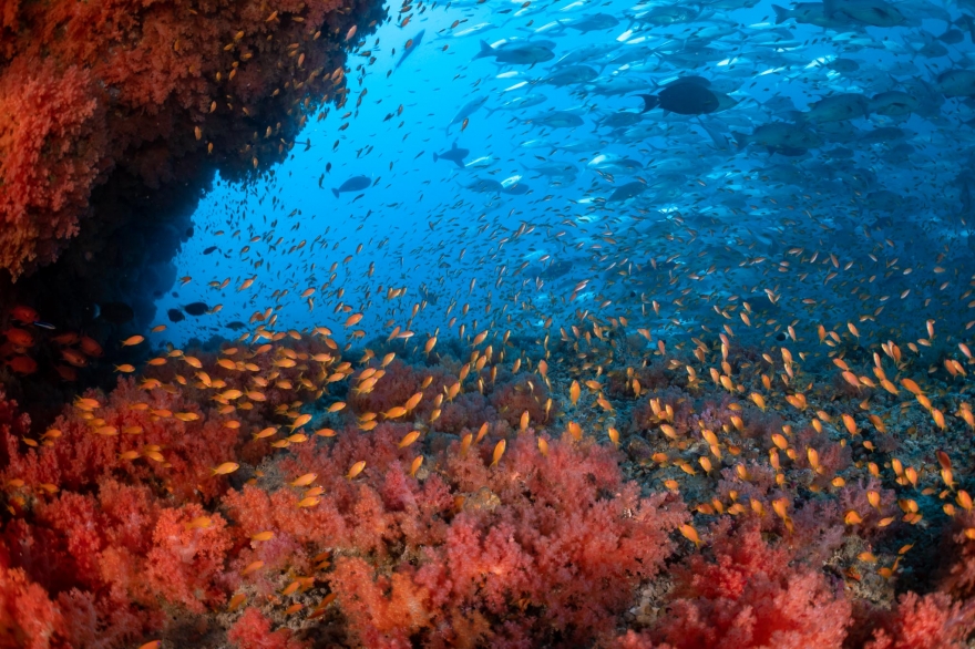 “From graceful manta rays and reef sharks to turtles, moray eels, and vast schools of tropical fish, our waters are teeming with life.” Just minutes from the resort are world-class dive sites including Kandooma Thila, a renowned cleaning station for grey reef sharks; Guraidhoo Corner, famous for its strong currents and pelagic encounters; and Medhu Faru, where divers drift alongside vibrant coral walls. The close proximity of these sites allows for up to three dives a day – ideal for enthusiasts chasing underwater thrills.